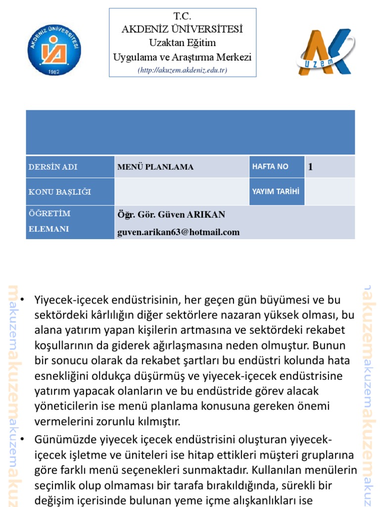 Menu Planlama Akdeniz Universitesi Akademik Bilgi Sistemi